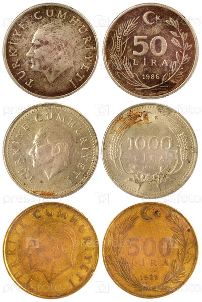 Старый редкие монеты Турции, изолированные на белом фоне