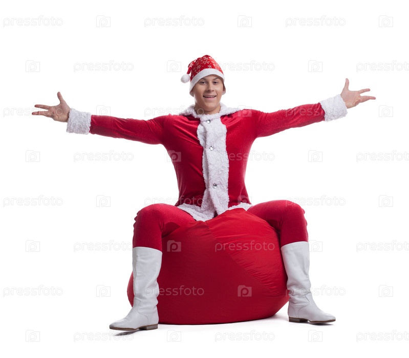 Молодой Санта Клаус с мешком