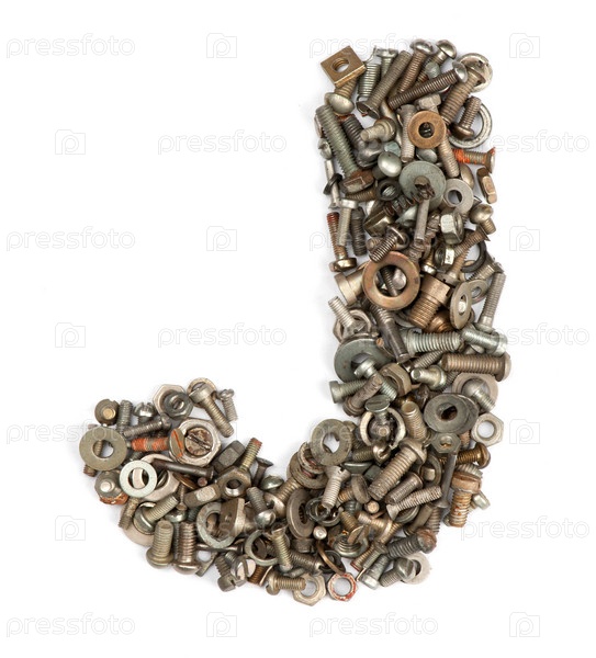 Буква алфавита из болтов на белом фоне