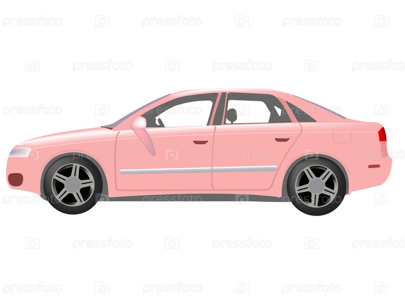 Розовый автомобиль на белом фоне