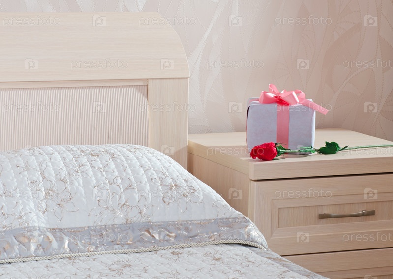 Подарочная коробка с розовой лентой и красная роза