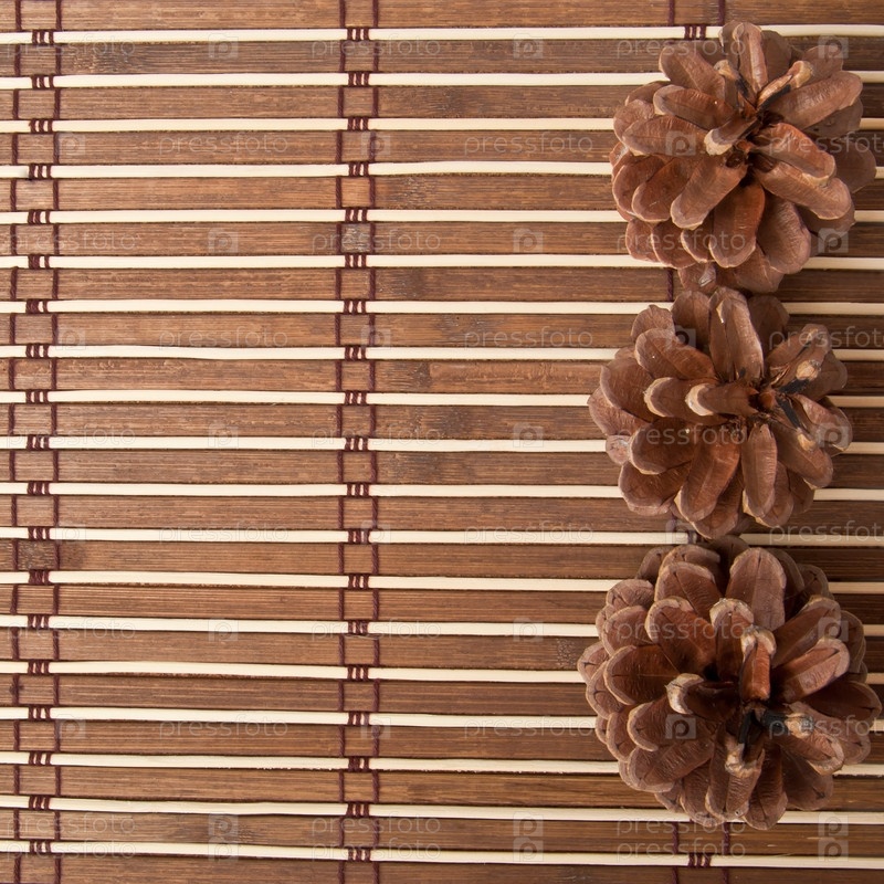 Сосновые шишки на фоне из бамбука