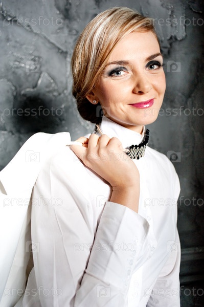 Молодая бизнес-леди в белом пиджаке