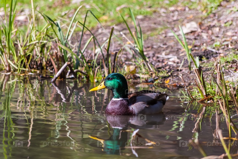 Утка плавает в пруду