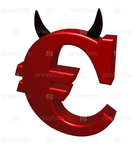 Символ евро с рогами на белом фоне - 3d иллюстрация