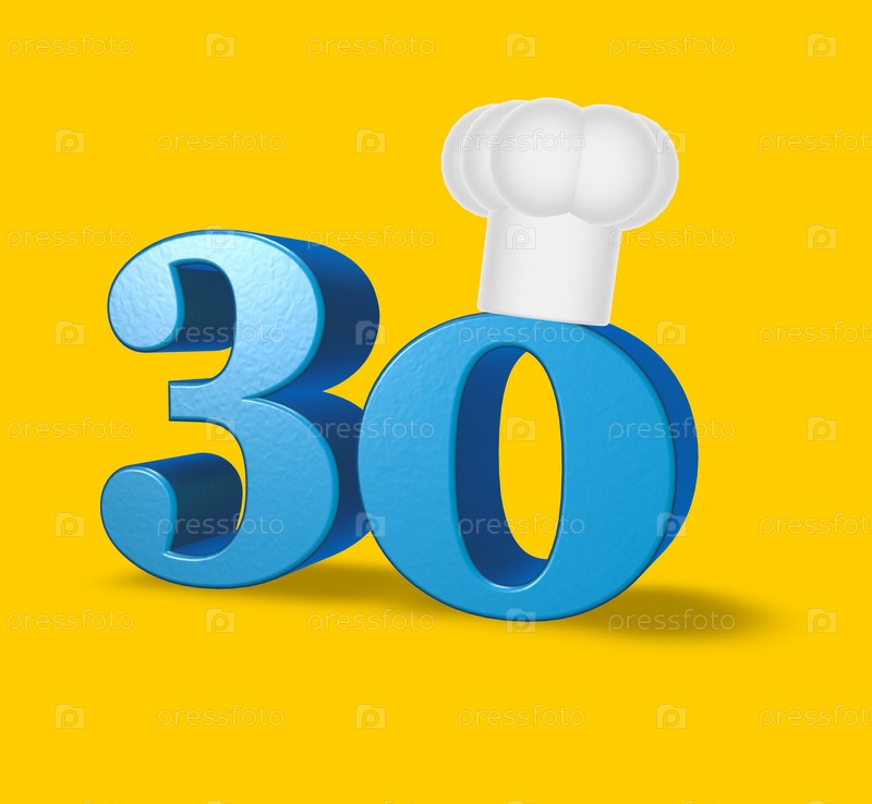Фигура 30 и кулинарная шапка на желтом фоне - 3d иллюстрация
