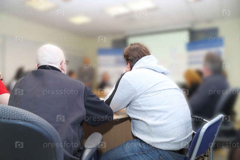 Бизнесмены сидят спиной на конференции