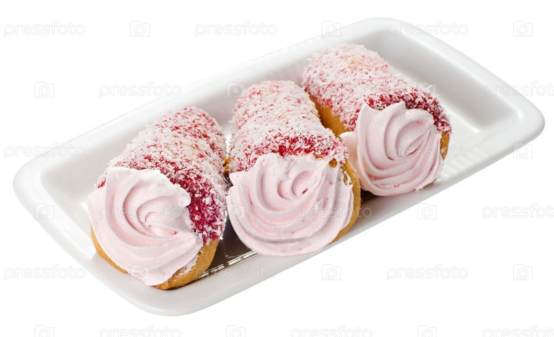 Три пирожных с розовым кремом