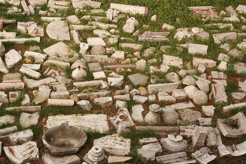 Сломанная мраморная архитектура на заднем дворе музея Топкапы, Стамбул, Турция