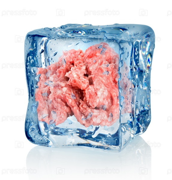 Кубик льда и рубленое мясо