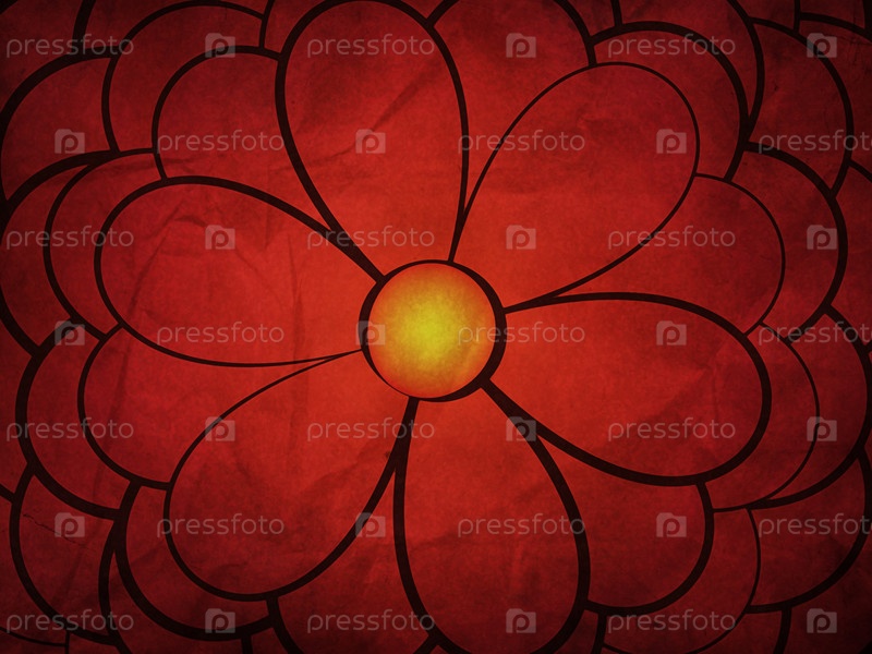 Нарисованный красный цветок на бумаге