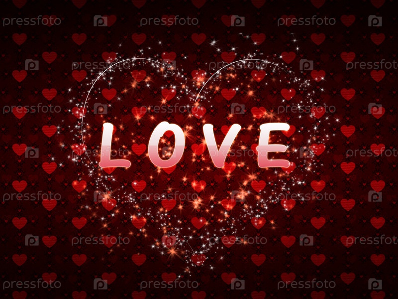 Красные сердца и слово 'love'