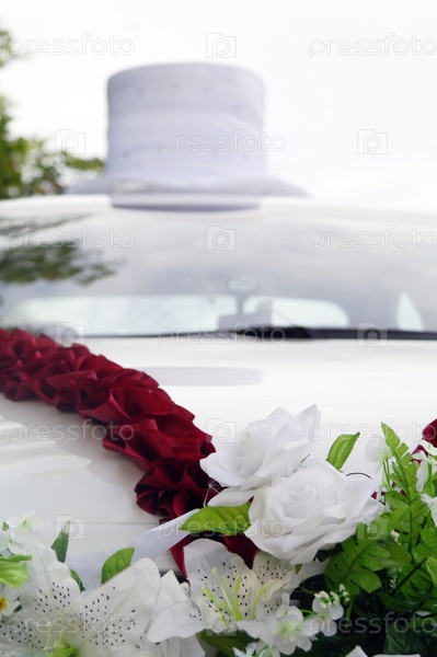Свадебный букет цветов на автомобиле