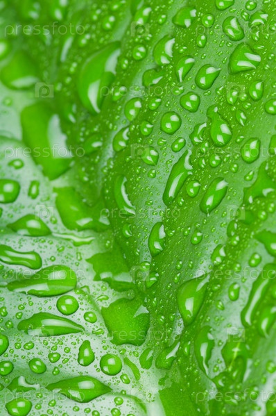 Капли воды на зеленом листе
