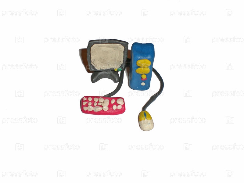 Компьютер из пластилина на белом фоне