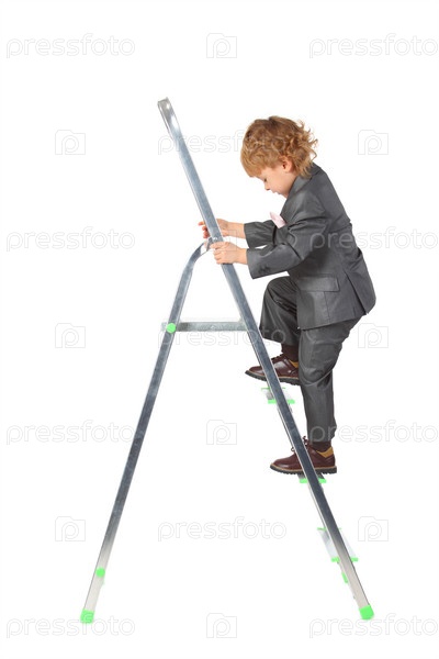 Мальчик в костюме поднимается по стремянке