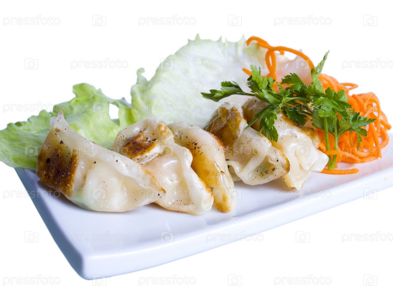 Пельмени с креветками на тарелке