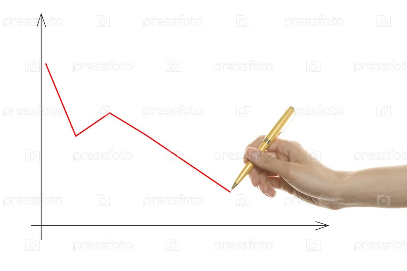 Рука чертит линию графика на белом фоне