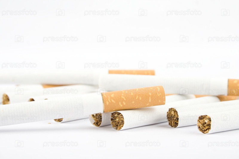 Куча сигарет на белом фоне