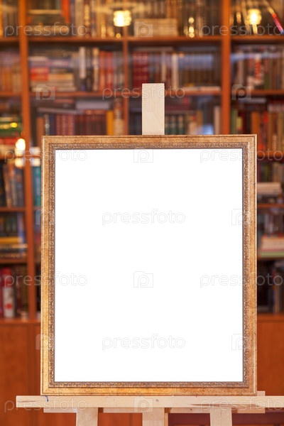 Белый холст в рамке на мольберте