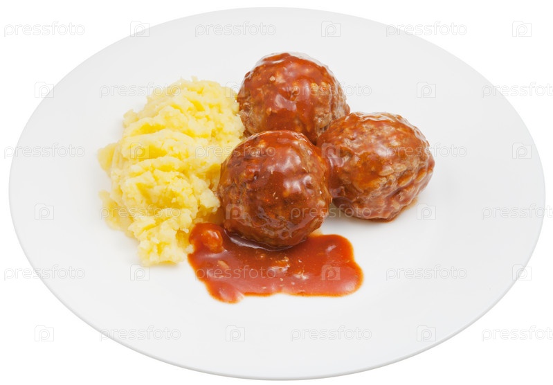 Фрикадельки под мясным соусом и картофельное пюре