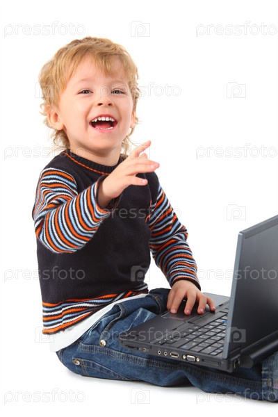 Улыбающийся мальчик с ноутбуком