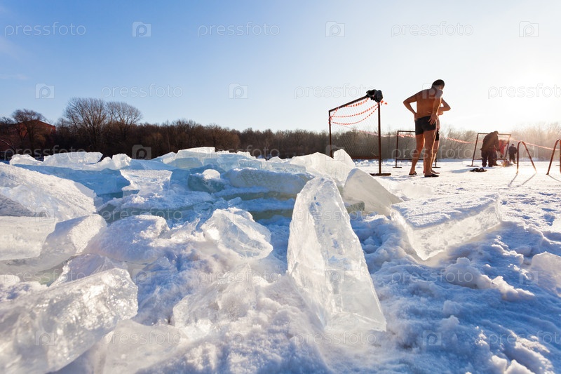 Зимние пловцы на замерзшей реке