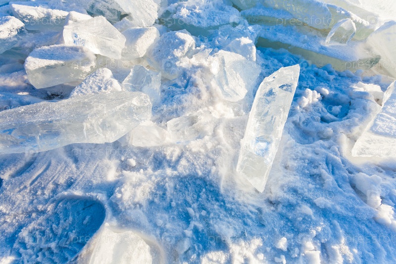 Блоки чистого льда в холодный зимний день под солнечными лучами