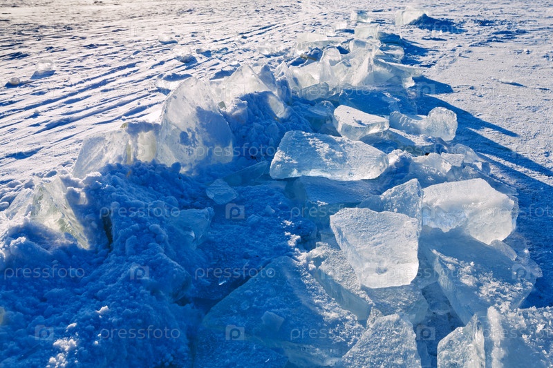 Блоки чистого льда в холодный зимний день под солнечными лучами