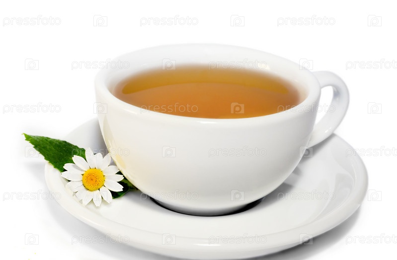 Белая чашка с ромашковым чаем