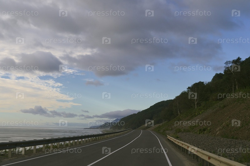 Пустая дорога вдоль берега