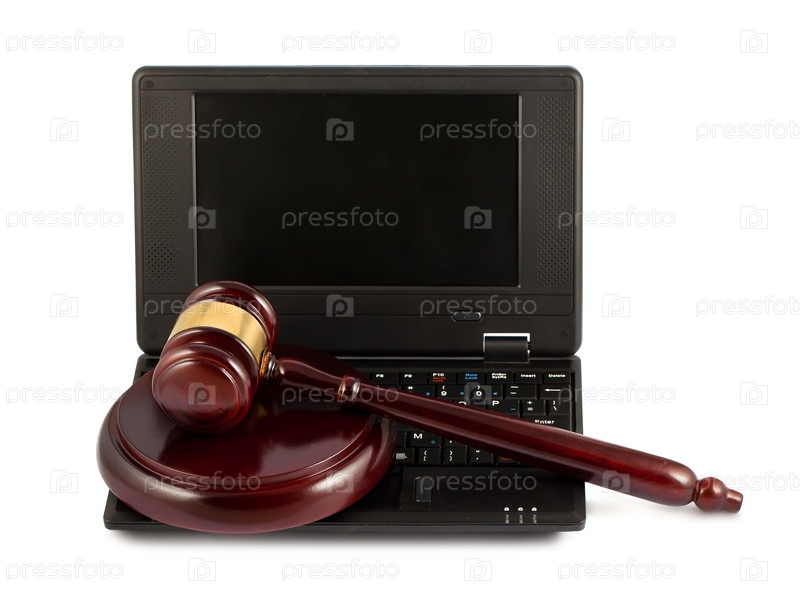 Деревянный молоток на клавиатуре ноутбука