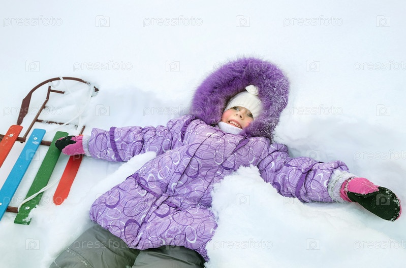 Девочка лежит в снегу