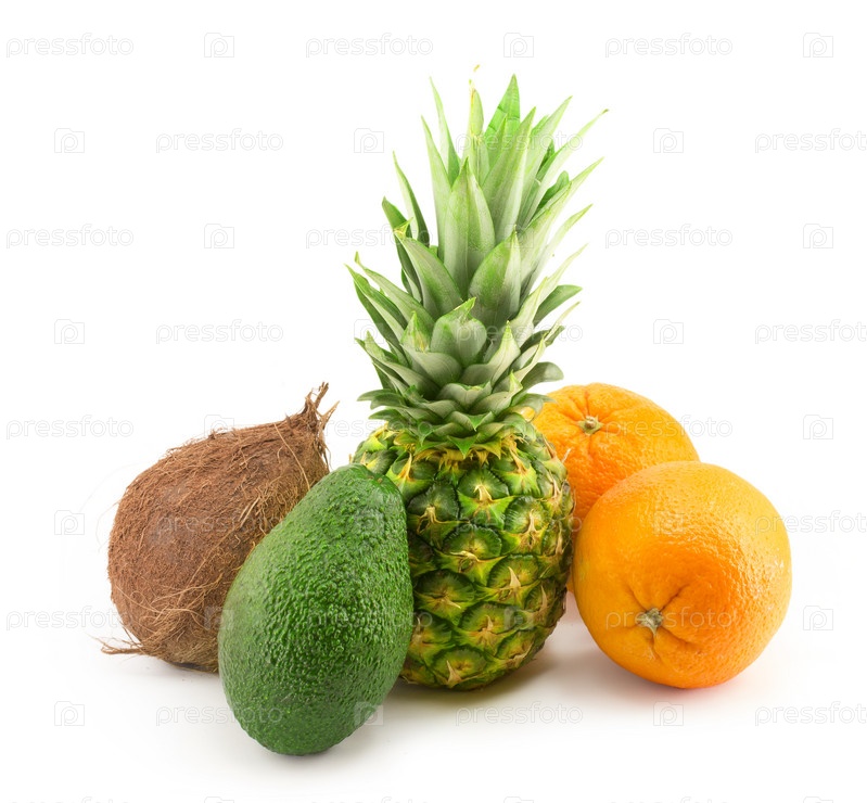 Кокос, авокадо, ананас и апельсин