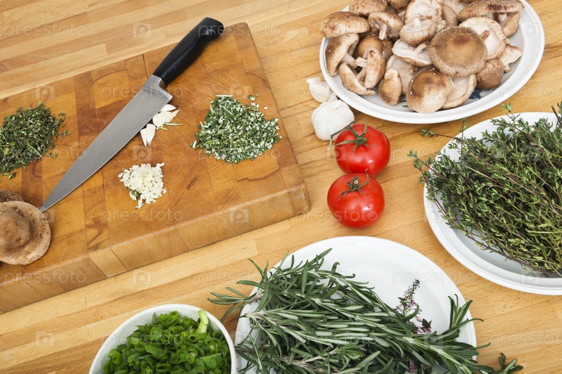 Овощи и разделочная доска на кухне