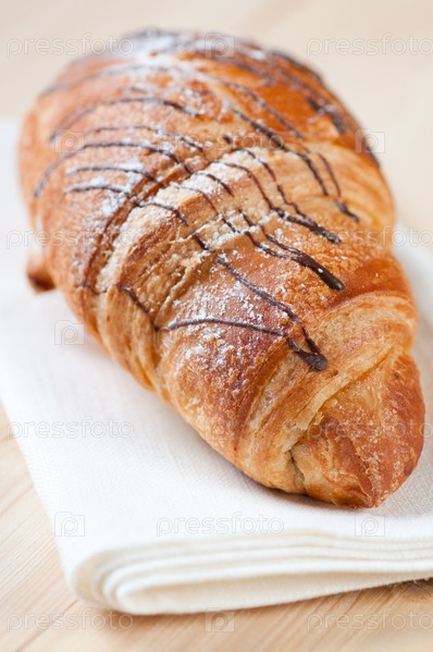 Свежий круассан с шоколадной глазурью