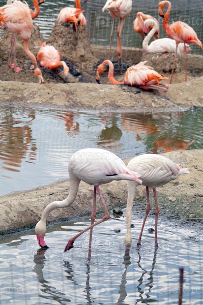 Птицы фламинго в зоопарке летом