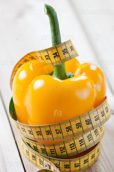 Концепция здорового питания: свежий болгарский перец и сантиметр