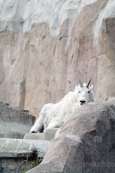 Горный козел среди камней и скал в зоопарке летом