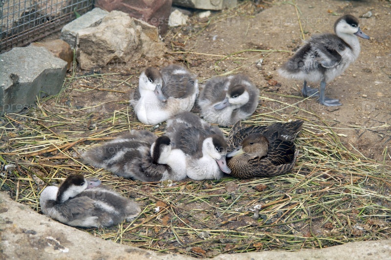 Семья уток в зоопарке летом