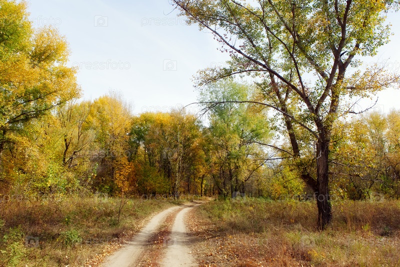 Песчаная дорога в осеннем лесу