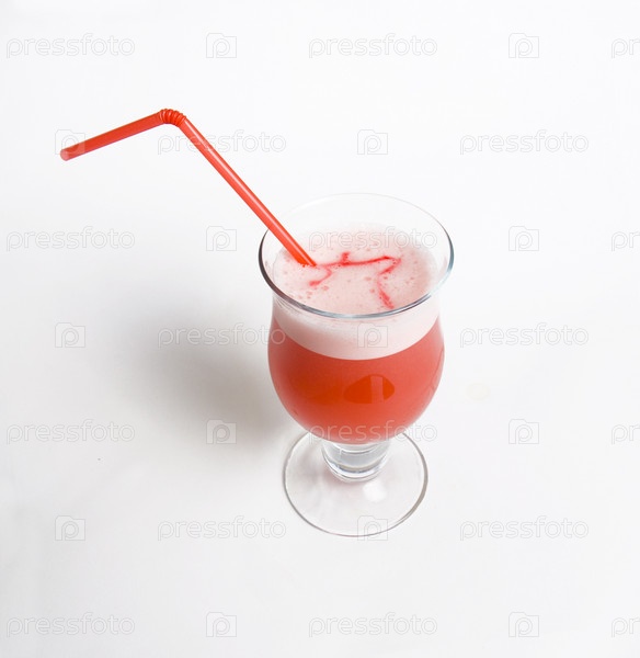 Бокал коктейля с трубочкой на белом фоне