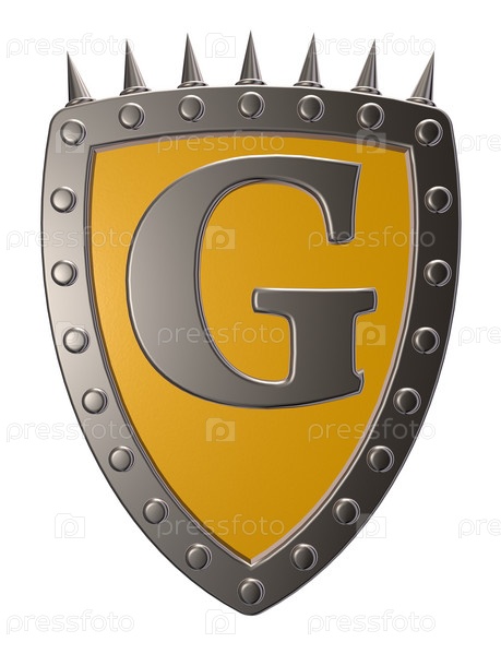 Металлический экран с буквой G на белом фоне - 3d иллюстрация