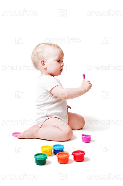 Годовалый ребенок с красками