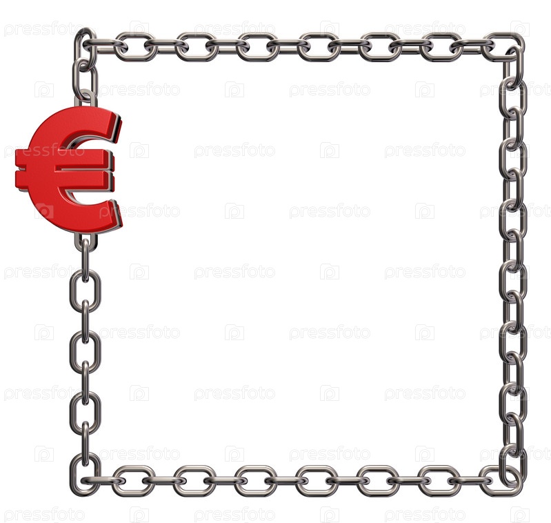 Металлическая цепь с символом евро на белом фоне - 3d иллюстрация
