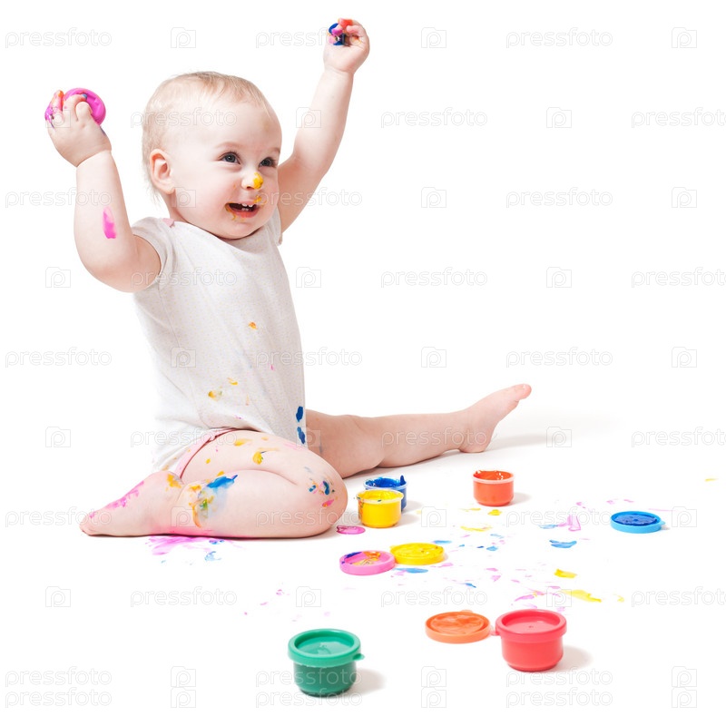 Годовалый ребенок с краской