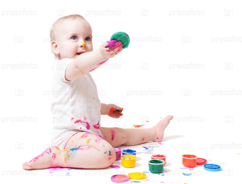 Годовалый ребенок с краской