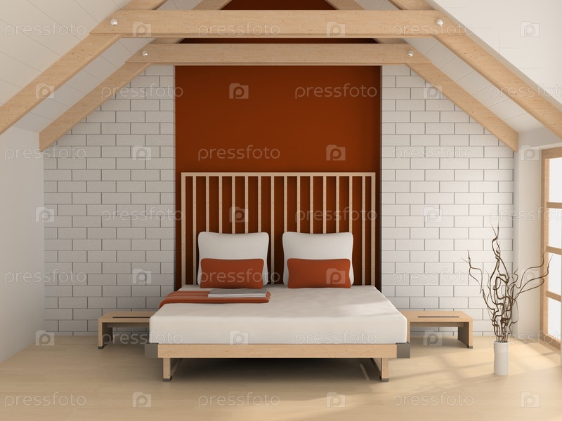 Современный интерьер спальной комнаты в бело-коричневом стиле