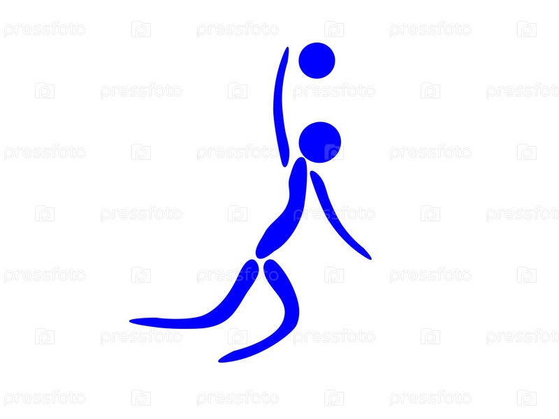 Синий нарисованный человечек играет в волейбол на белом фоне