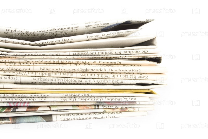 Стопка свежих газет на белом фоне